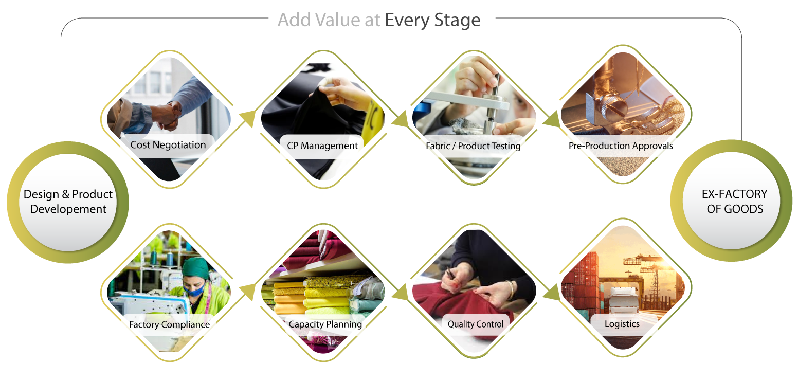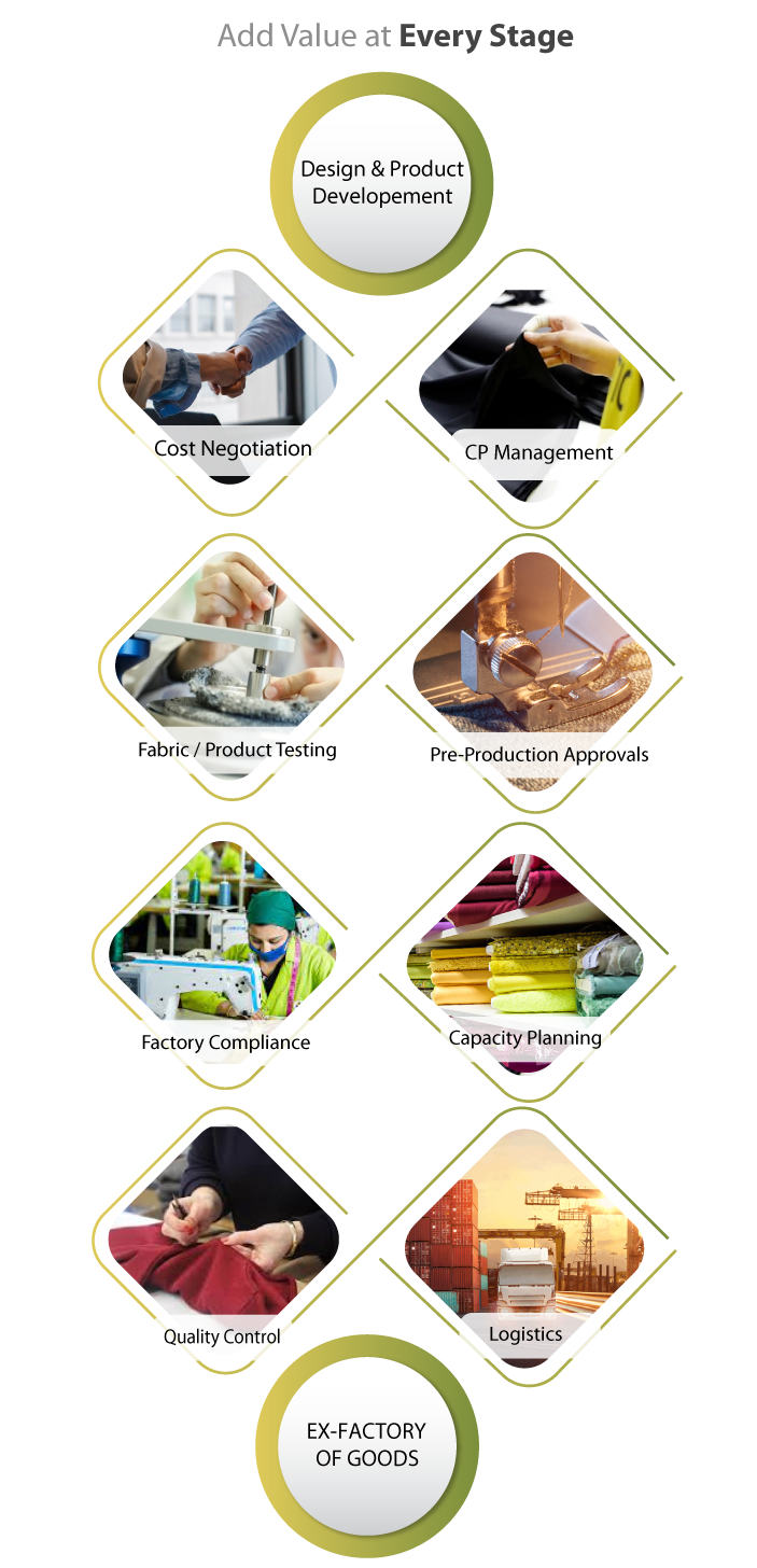 We have a comprehensive manufacturing base with the ability to offer a range of product categories across woven andjersey. We ensure you always get the right product from the right factory, at the right price.